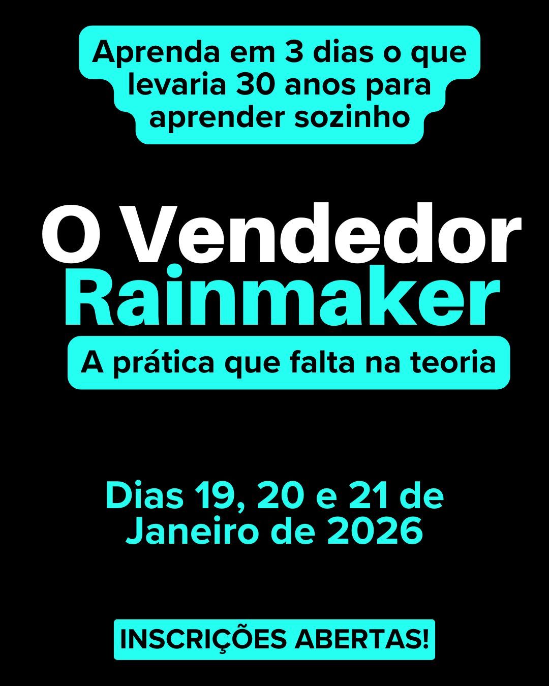 Mentoria Rainmaker: para quem já fez curso demais e ainda não virou o jogo. Acompanhamento real, método vivo e prática diária com o Jordão para transformar conhecimento em resultado. Não é mais um curso. É você vendendo de verdade com direção, ritmo e consistência.